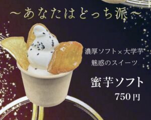 9月19日(木)からカフェ「秋の味覚バトル」開催のお知らせ 投稿日:2024年09月19日 9月19日(木)から園内奥の遊々館カフェにて「秋の味覚バトル」を開催します。秋の味覚の代表である、サツマイモと栗を使用したスイーツで秋を存分に味わって下さい。 ◎蜜芋ソフト¥750 ◎モンブランソフト¥750